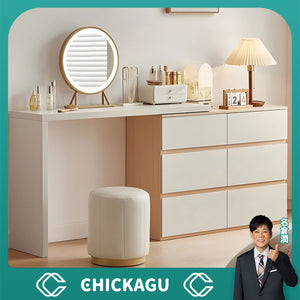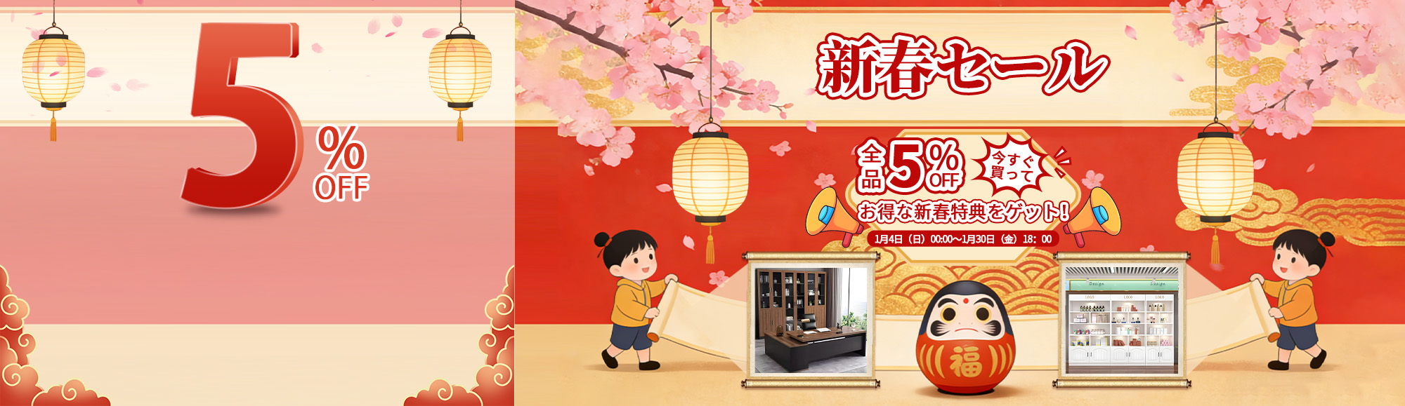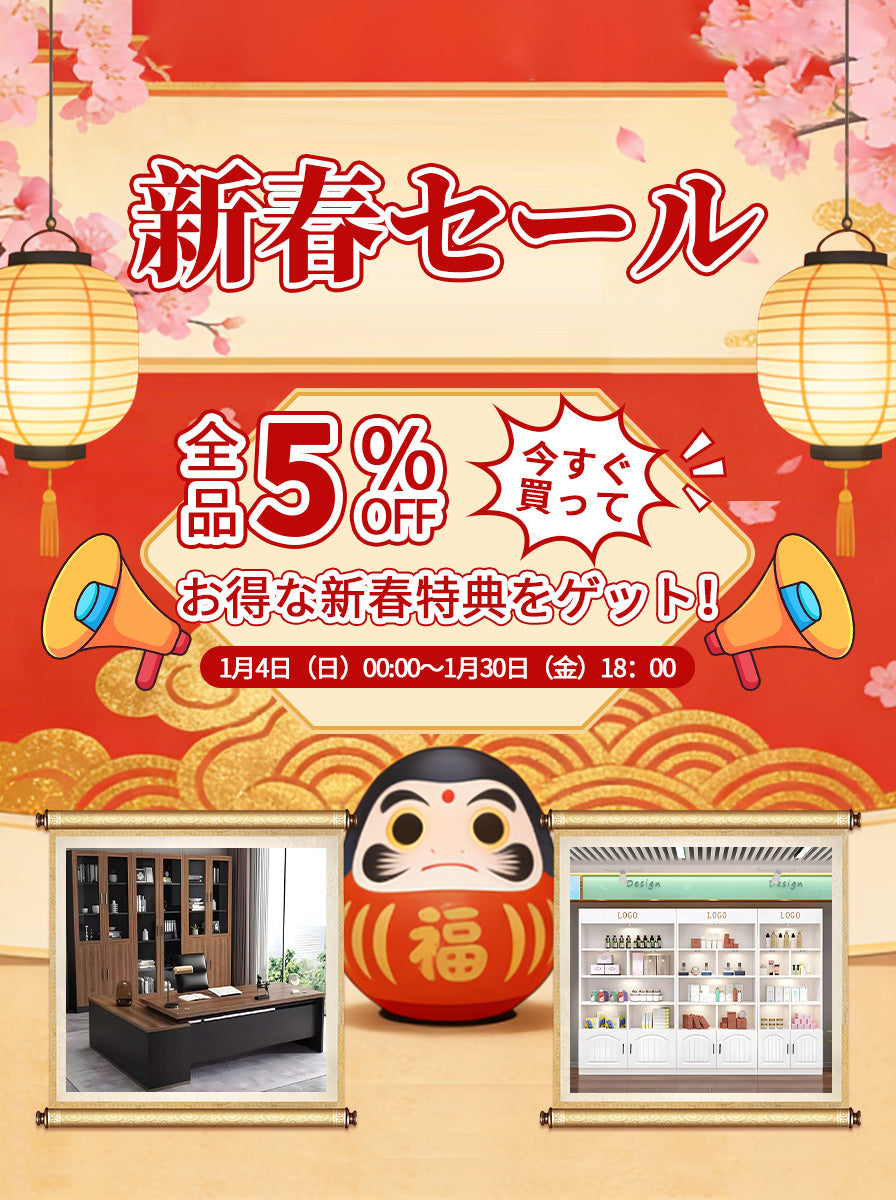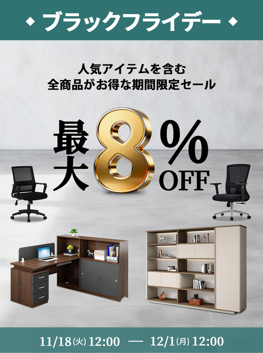 シェルフキャビネットは、エグゼクティブデスクに調和するホワイトとナチュラルの色合いで、扉付き収納とオープン収納スペースを備えています。これにより、必要に応じて見せる収納と隠す収納を使い分けることが可能となり、整理整頓が容易になります。