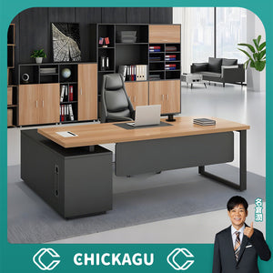 弊店がおすすめしたエグゼクティブデスクは、L字型のデザインと自然な木目調の温かみのある色合いが特徴で、空間を広々と使用できるだけでなく、搭載されたサイドキャビネットが文書や小物の整理にも役立ち、作業効率が向上します。このデスクの佇まいは、空間を洗練させ、快適なワークスペースを実現します。