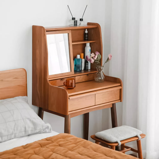 引き出し 仕切り 可動棚板 分類収納 回転可能 鏡 天然木 八の字構造 耐久性 ドレッサー デスク 化粧台 コンパクト 機能性 ナチュラル HZT-C033