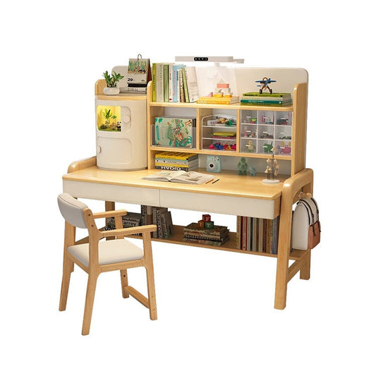 学習デスク インドア 勉強 子供 パソコンデスク 収納棚 引き出し 分類収納 昇降可能 クッション付き椅子 天然木 角丸加工 フック 木質感 実用 便利 ナチュラル SNZ-C020
