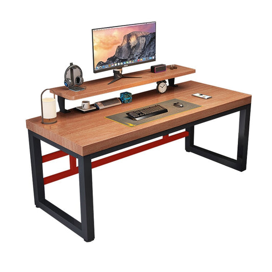 デスク インドア 室内 パソコンデスク 天然木 広い天板 分厚い モニター置き棚 炭素鋼フレーム 頑丈 口字型 安定性 落ち着き 重厚感 カスタマイズ可能 SNZ-C040