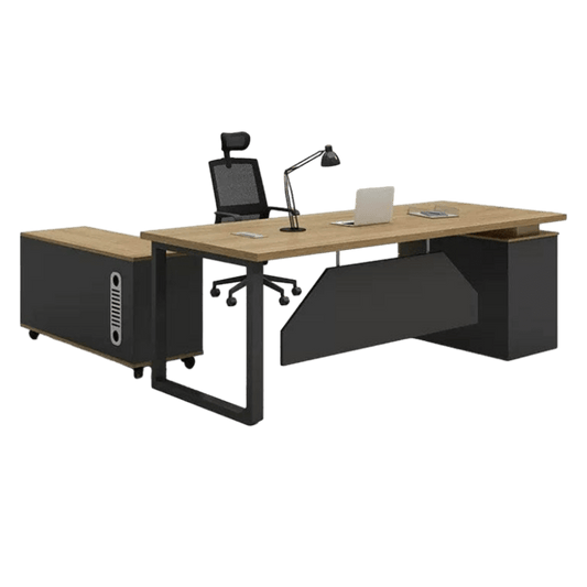 セールスチール脚 サイドキャビネット ㍶収納 エグゼクティブデスク オフィスデスク ワークデスク 役員デスク 幕板付き ナチュラル カスタマイズ可能 LBZ-C083