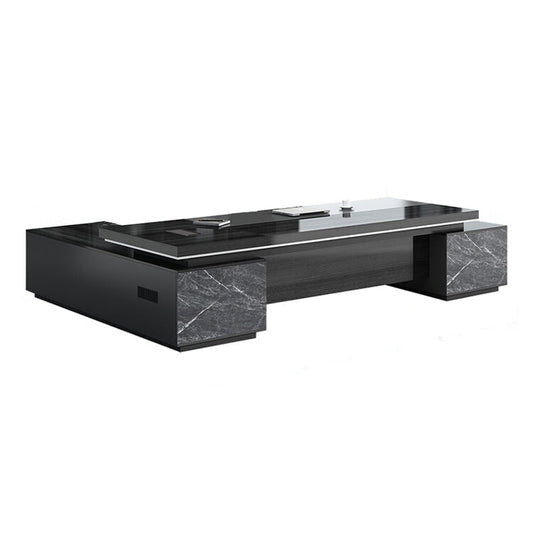 セール収納棚 ㍶収納 マーブル模様 配線穴ボークス エグゼクティブデスク 役員デスク オフィスデスク パソコンデスク ブラック カスタマイズ可能 LBZ-C122