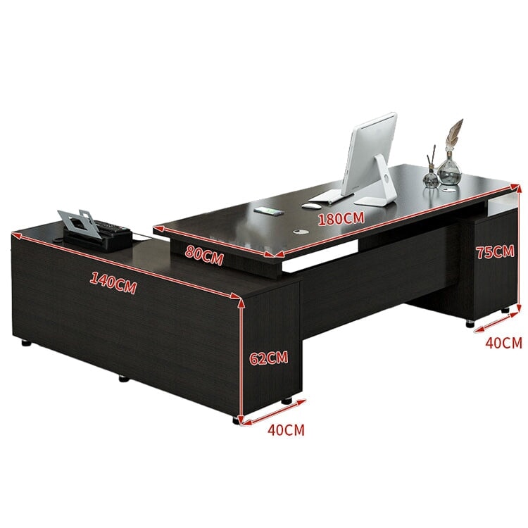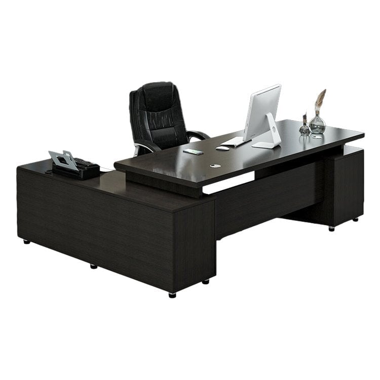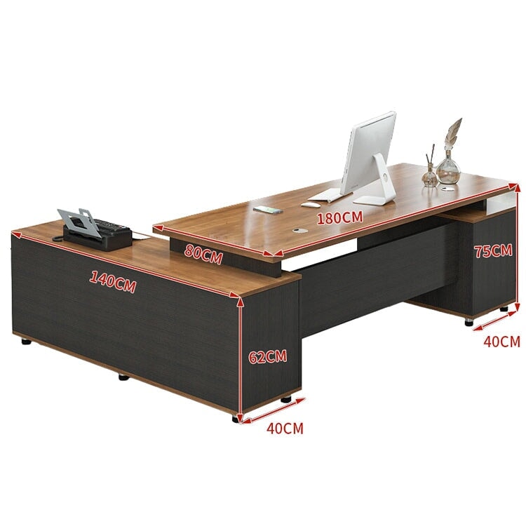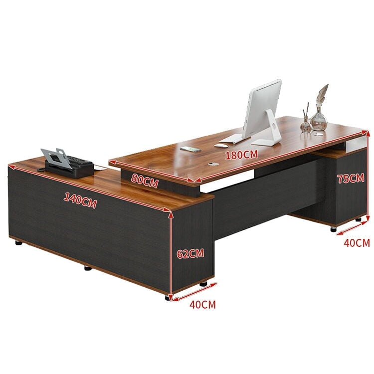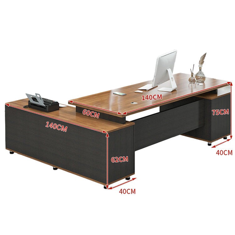 役員室用 社長室用 配線穴付き Ⅼ字 サイドキャビネット付き 幕板付き プレジデントデスク パソコンデスク 事務机 エグゼクティブデスク おしゃれ 木目調 LBZ-C070