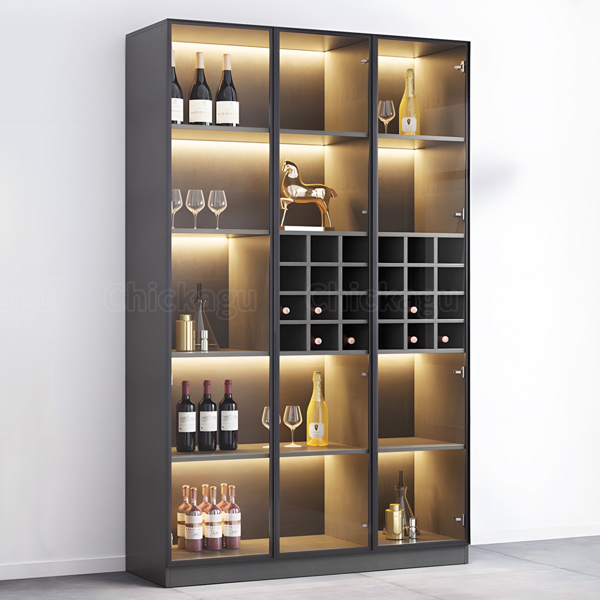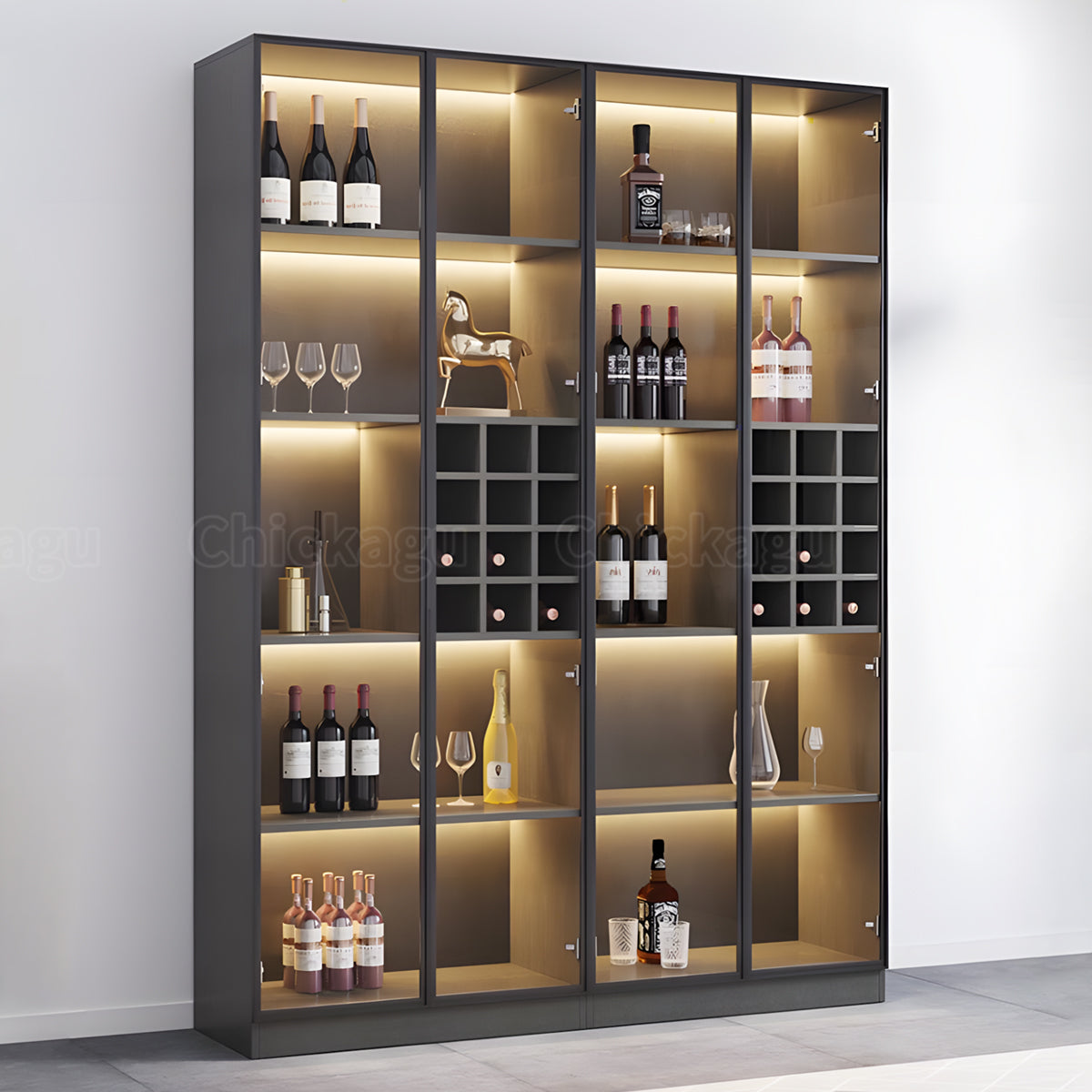 セールワイン棚 ワイン収納 LEDライト キッチン収納 リビング収納 木製棚 収納棚 ワインラック オシャレ ブラック カスタマイズ可能 SNG-015