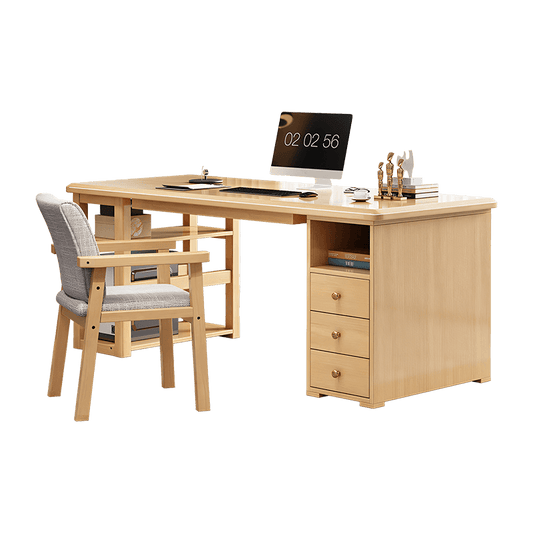 天然木 エコ塗装 引き出し オープン収納 オフィスデスク ワークデスク パソコンデスク デスク 広い天板 ラバーウッド PC収納 角丸 簡素 ナチュラル BGZ-C006