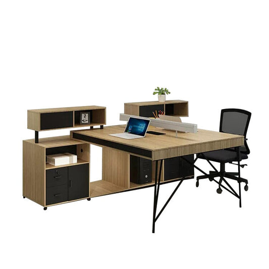 集中力向上 トップパネル キャビネット 引き出し 扉付き収納 スチール脚 デスク ワークデスク オフィス用 落ち着き シンプル ウォールナット カスタマイズ可能 BGZ-C052