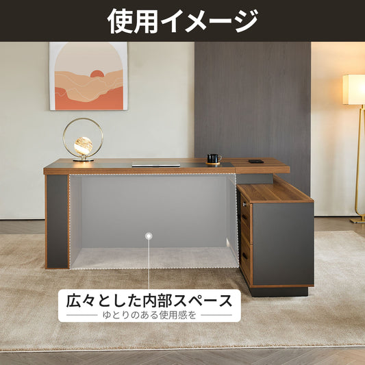 社長机 エグゼクティブデスク 事務机 引き出し付き サイドキャビネット 広い天板 コンセントボックス おしゃれ 木目調 LBZ-2143