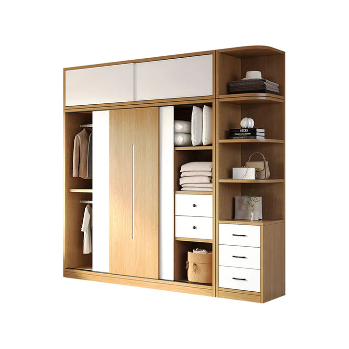 セール多目的 引き戸 錠付き引き出し 物干し竿 分類収納 大容量 天然木 静音レール ワードローブ 壁面収納 クローゼット シンプル すっきり 実用 ホワイト YG-C005