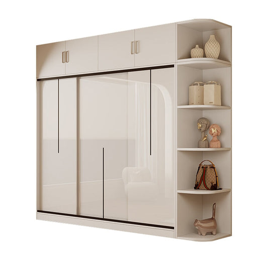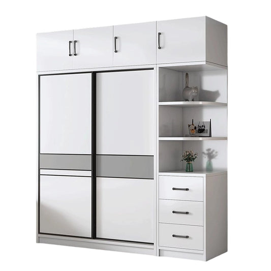 セール大容量 多目的 分類収納 上置き収納 サイド収納棚 引き戸 頑丈 耐久性 クローゼット ワードローブ 壁面収納 物干し竿 洗練 すっきり ホワイト YG-C002