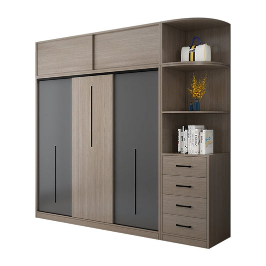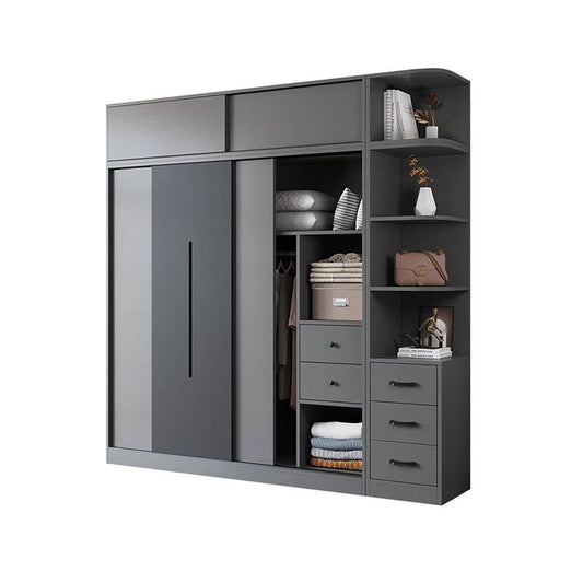 クローゼット ワードローブ 服 収納 大容量 多段式 奥行き エコ板材 扉付き 分類収納 引き戸 使い勝手 実用 YG-C025