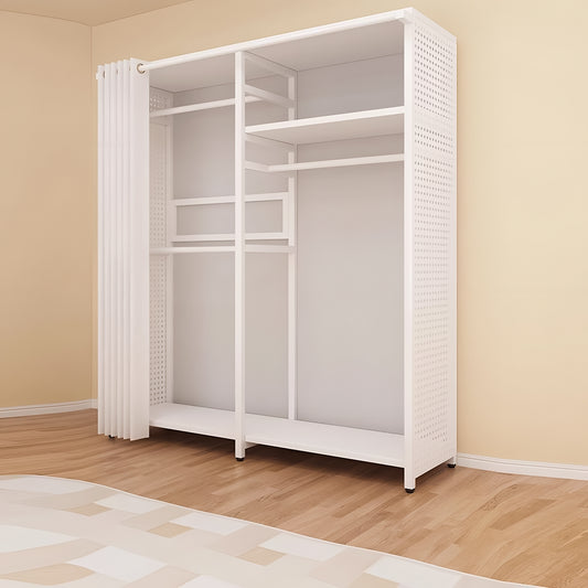 炭素鋼 エコ板材 大容量 カーテン付き 有孔ボード クローゼット ハンガーラック ハンガーパイプ モダン シンプル 機能的 YG-C083