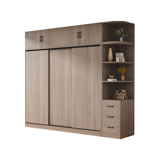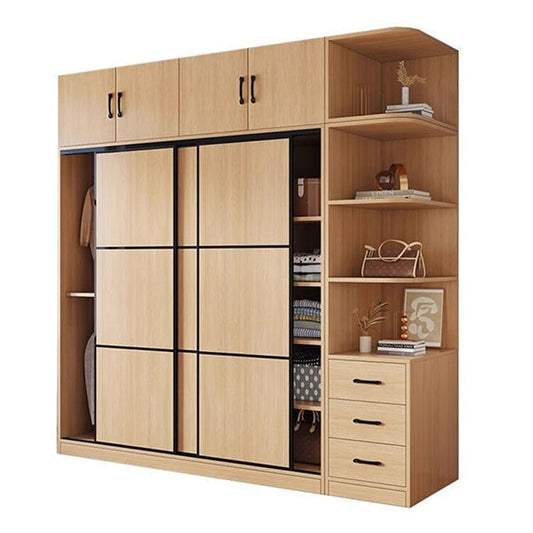 大容量 多目的 分類収納 エコ板材 木目調 物干し竿 引き戸 上置き収納 クローゼット ワードローブ 壁面収納 ナチュラル 機能的 カスタマイズ可能 YG-C024