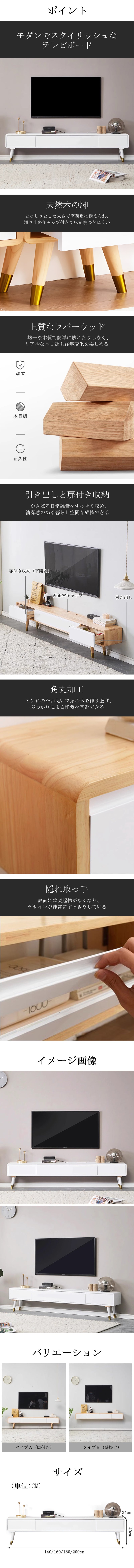 テレビボード テレビ台 TV台 天然木 ラバーウッド 耐久性 滑り止めキャップ 引き出し 扉付き収納 角丸加工 隠れ取っ手 モダン スタイリッシュ 上質 DSG-C016