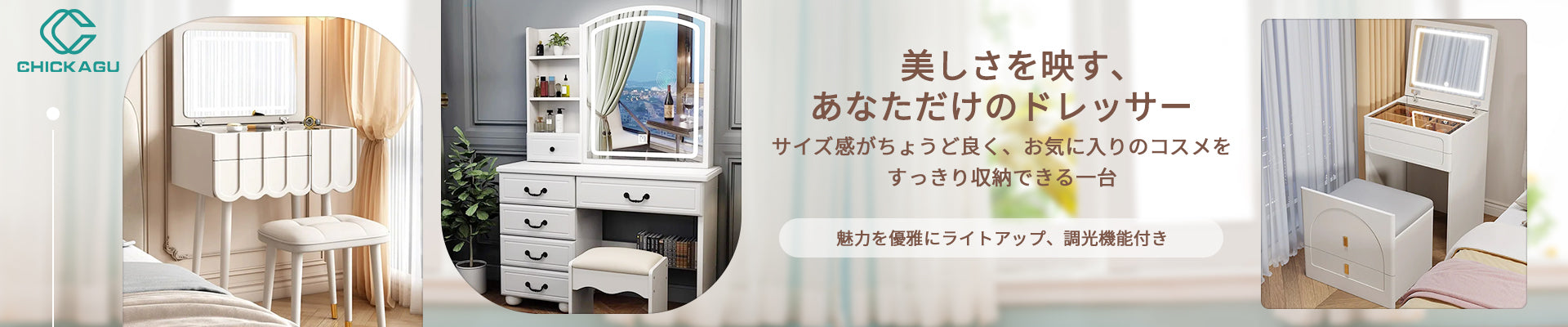 ドレッサー 鏡台 化粧台 鏡 ミラー LEDライト 明るさ調整 三段階 収納 棚 引き出し エコ板材 スツール ウレタン PUレザー オシャレ 上質 使い勝手 HZT-C006