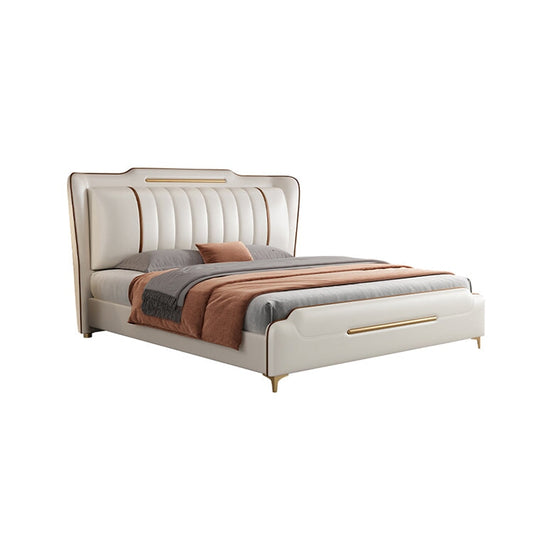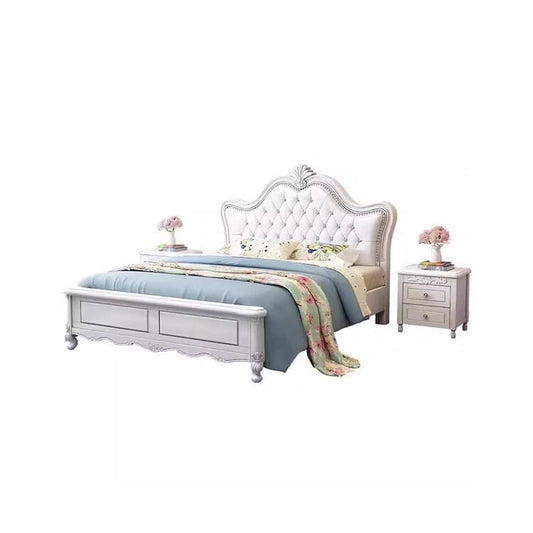 ベッド キング サイズ 二人用 ポリエステル生地 革 ヘッドボード ウレタン 天然木すのこ ベッド下収納 大容量 柔らか 快適 実用 ホワイト BED-C005