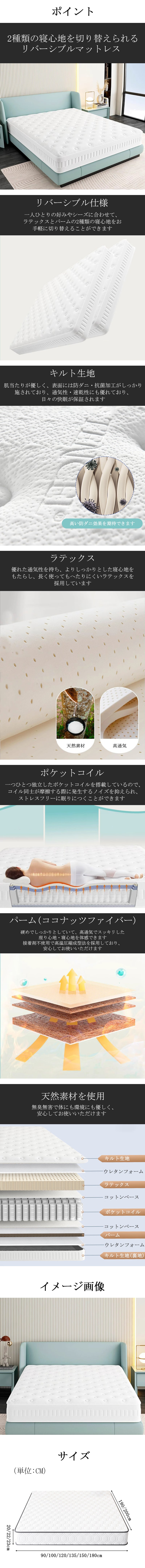 | 素材 | ラテックス、ニット織り生地 ボンネルコイル、エコのココナッツパーム |