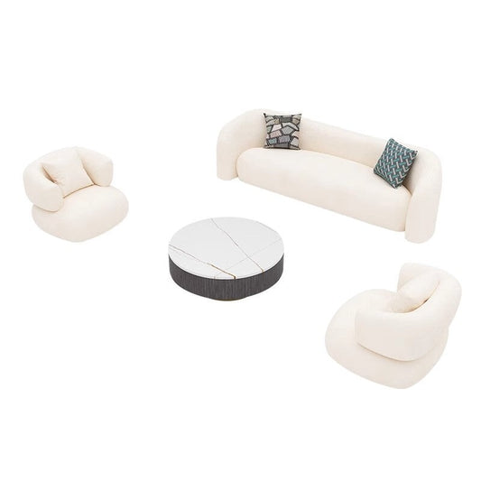セールシェルパ生地 モコモコ 人間工学 広い座面 高密度ウレタン 天然木枠組み ソファ 応接ソファ 安定感 柔らか 弾力性 快適 シック ホワイト カスタマイズ可能 JDSF-C004