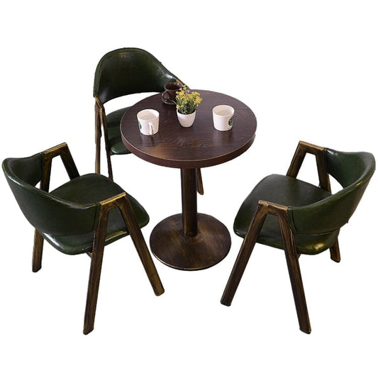 カフェテーブルセット レストラン オイルレザー生地 人工レザー 円型テーブル 1人掛け 2人掛け シック ブラウン カスタマイズ可能 JDZH-030-kc