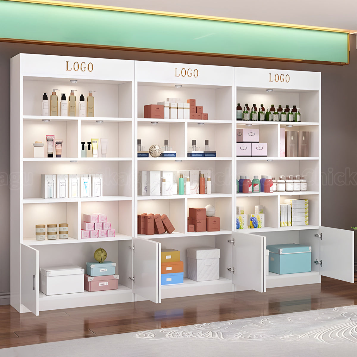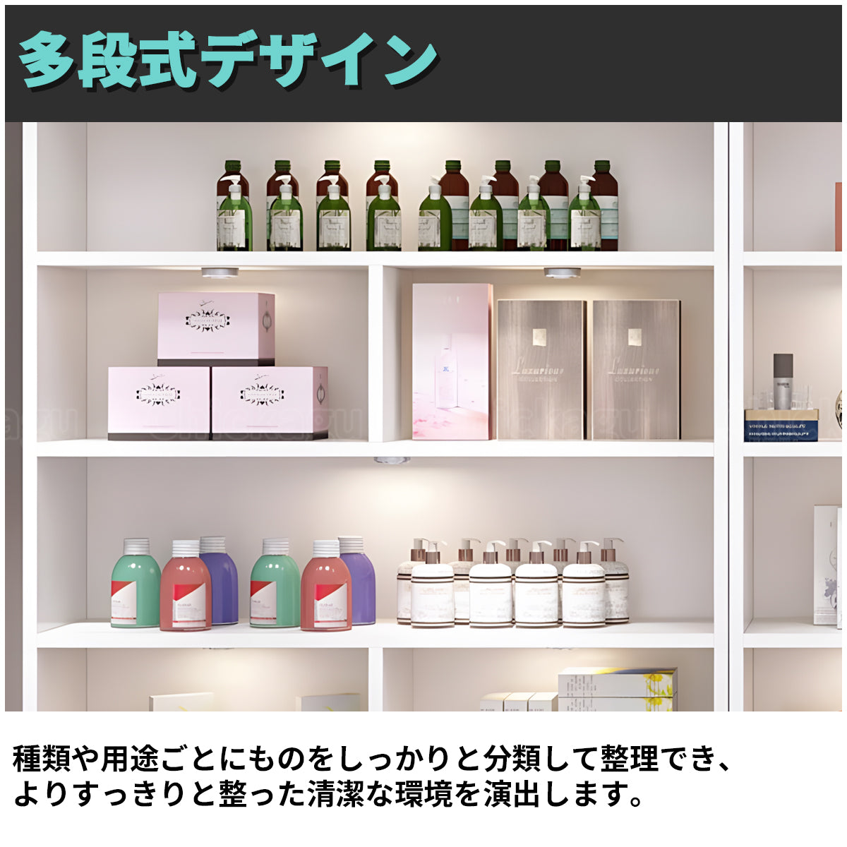 ライト付き 大容量 多段式 厚い棚板 仕切り 取っ手 蝶番 キャビネット 収納キャビネット 収納棚 実用的 シンプル ホワイト カスタマイズ可能 SNG-C030
