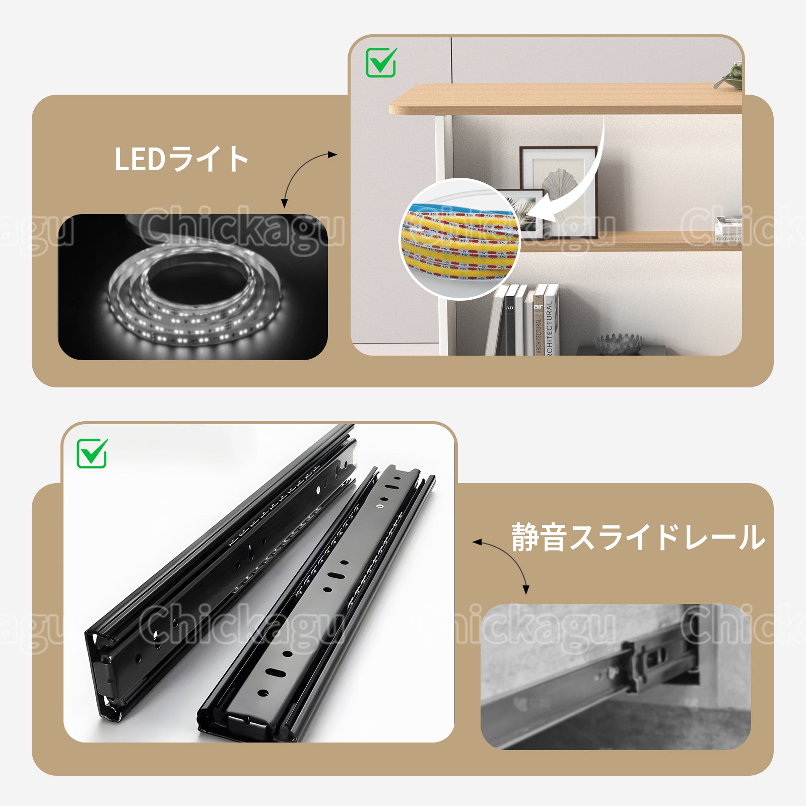 ライト付き 大容量 多段式 厚い棚板 仕切り 取っ手 蝶番 キャビネット 収納キャビネット 収納棚 実用的 シンプル ホワイト カスタマイズ可能 SNG-C030
