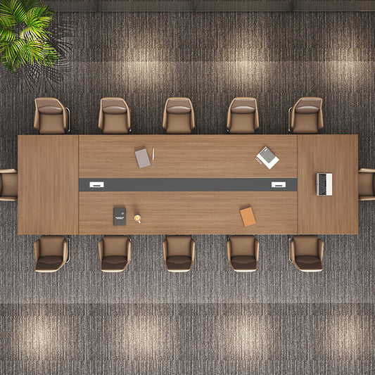 メラミン化粧板 分厚い天板 重厚感 安定性 収納 配線ボックス 会議テーブル ミーティング テーブル 木目調 落ち着き 機能性 カスタマイズ可能 HYZ-C057