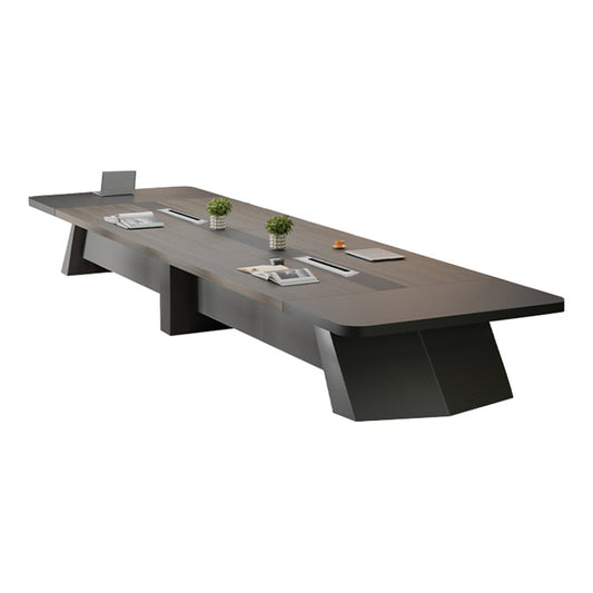 セール分厚い天板 配線ボックス 幅広 舟型天板 台形脚 安定性 会議テーブル ミーティングテーブル テーブル 木目調 自然な風合い 洗練 シンプル カスタマイズ可能 HYZ-C041