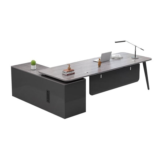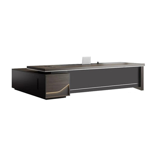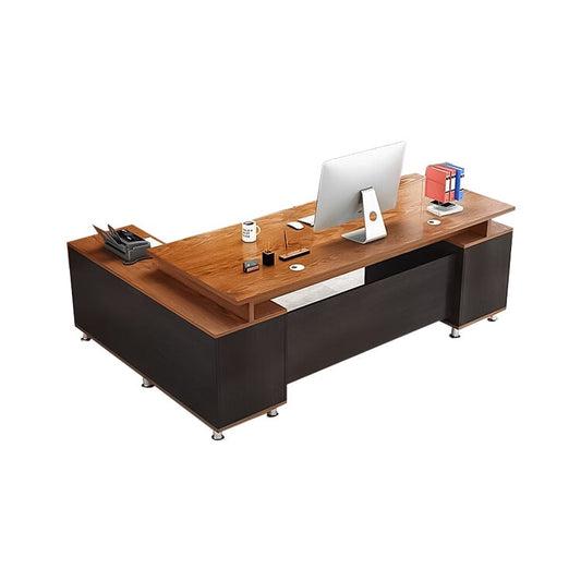 役員室用 社長室用 配線穴付き Ⅼ字 サイドキャビネット付き 幕板付き プレジデントデスク パソコンデスク 事務机 エグゼクティブデスク おしゃれ 木目調 LBZ-C070