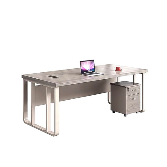 エグゼクティブデスク オフィス家具 デスク 引出し3つ付き 角丸 広いスペース キャビネット付き シンプル ホワイト グレー LBZ-054
