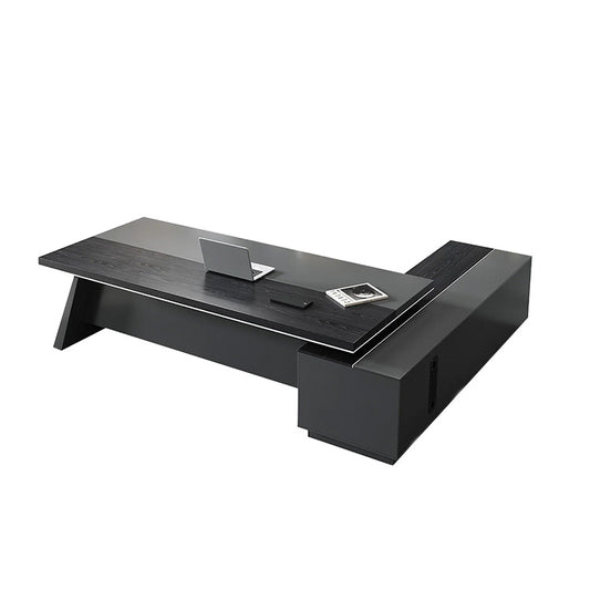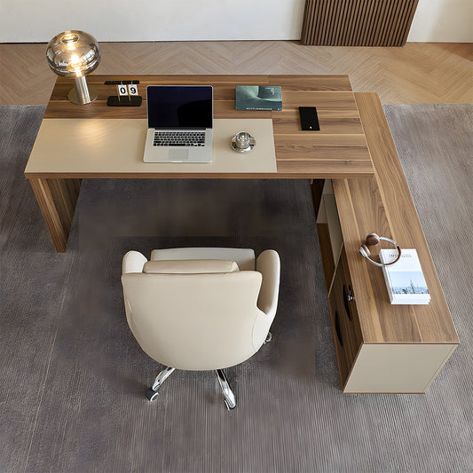 L字 幅広 分厚い天板 キャビネット 大容量 配線ボックス 通気孔 デスク 役員デスク エグゼクティブ 重厚 上質 機能的 カスタマイズ可能 LBZ-C062