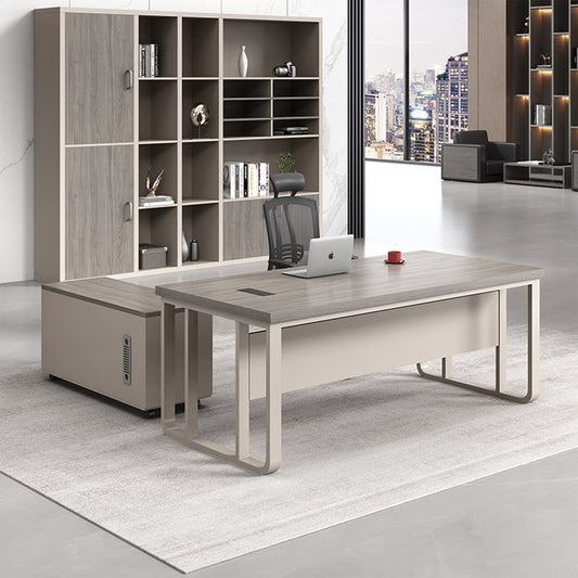 エグゼクティブ デスク 役員デスク 役員家具 引出し付き PC収納 シリンダー錠付き 幕板付き 配線ボックス付き シンプル グレー LBZ-086