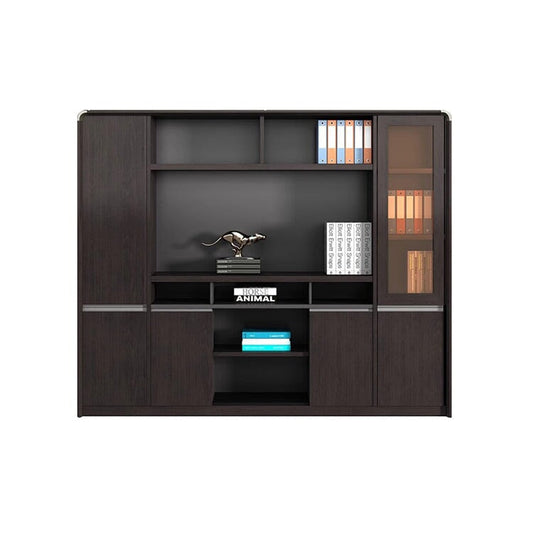 役員室用 書斎用 オープン収納 扉付き 高級感 オフィスキャビネット ディスプレイラック 本棚 キャビネット 収納ラック 収納棚 ウォールナット カスタマイズ可能 CWG-C031