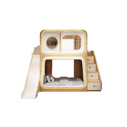 LEDライト 木目調 子供用 二段ベッド 上質な二段ベッド おしゃれ モンダン 階段 ハシゴ R加工 ベッドガード メラミン化粧板 SCC-M080