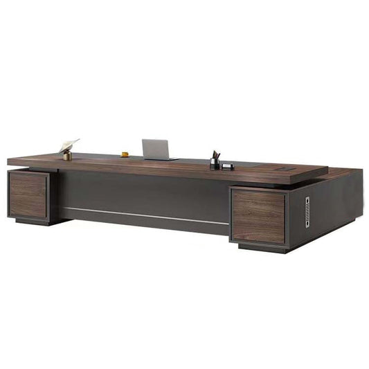 セールエグゼクティブデスク 役員デスク 社長デスク 木目調 キャスター付き 配線ボックス付き 幕板付き 大容量収納 錠付き オークグレー カスタマイズ可能 LBZ-K-037-kc