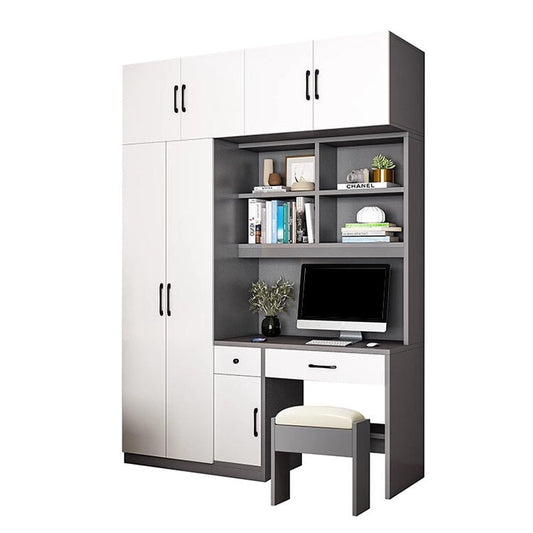 扉付き収納 オープン収納 引き出し 大容量 分類収納 エコ板材 ハンガーパイプ デスク クローゼット 壁面収納 洗練 使い勝手 実用 ホワイト グレー カスタマイズ可能 YG-K010