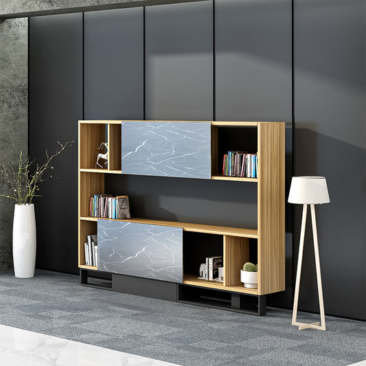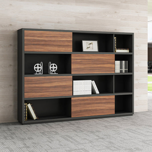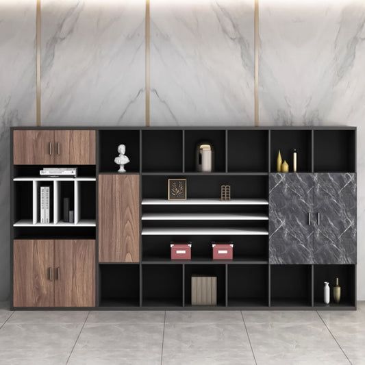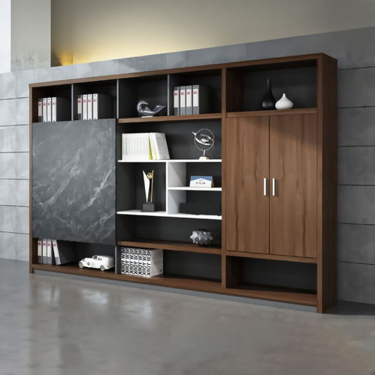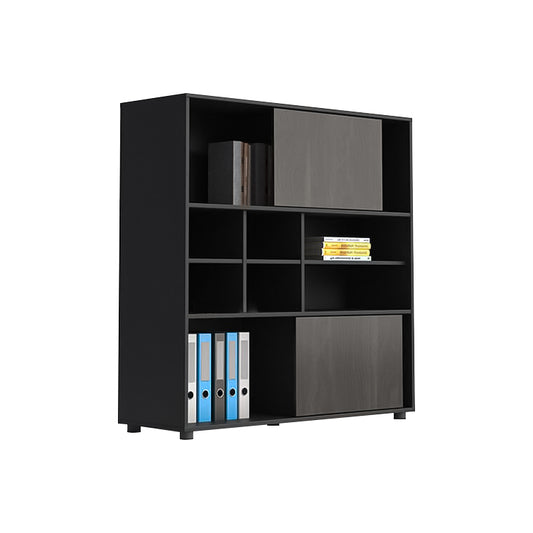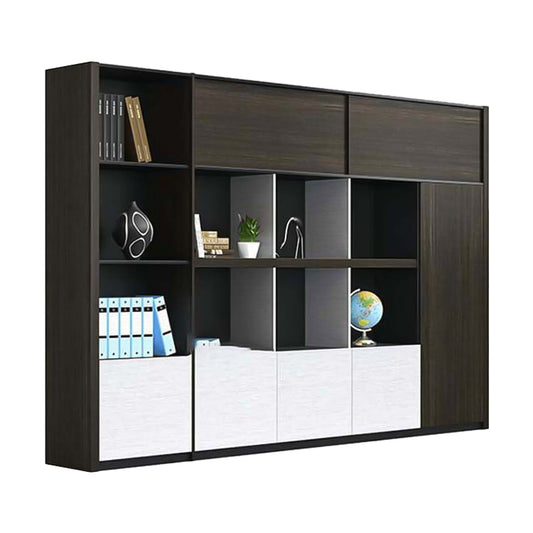 多段式 オープン収納 扉付き メラミン化粧板 引き戸 キャビネット 収納棚 収納キャビネット ダークトーン 落ち着き 機能的 カスタマイズ可能 CWG-C015