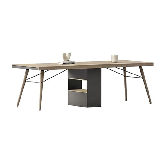 メラミン化粧板 安全無臭 天然木脚 補強フレーム 中間脚 安定性 配線ボックス テーブル ミーティング 会議テーブル 木目調 機能的 実用 ナチュラル カスタマイズ可能 HYZ-C067