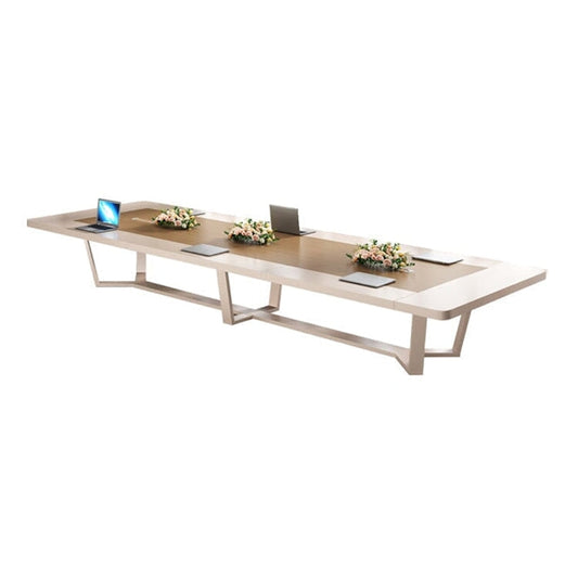 メラミン化粧板 配線孔 エコ 無毒 シンプル 木目調 広々 会議テーブル ミーティングテーブル オフィスデスク 会議室 業務用 ホワイト カスタマイズ可能 HYZ-C062