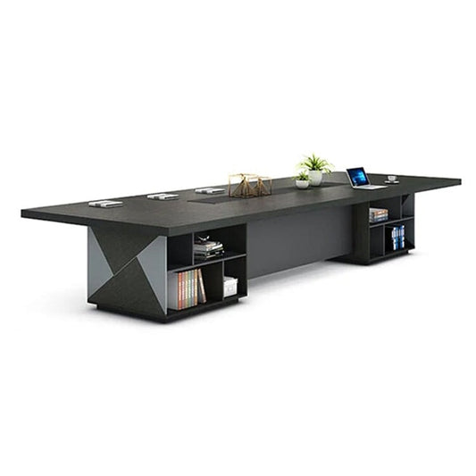 シック 落ち着き オープン収納 収納ラック付き 配線ボークス おしゃれ メラミン化粧板 会議テーブル ミーティングテーブル オフィスデスク 会議室 HYZ-C054