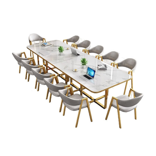 シンプル 温もり 木目調 マーブル調 長方形タイプ 事務机 商談テーブル 会議テーブルセット ミーティング用テーブル 会社用 事務所用 ホワイト カスタマイズ可能 HYZ-C044