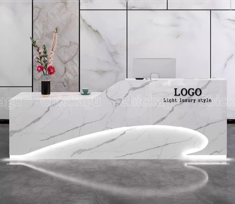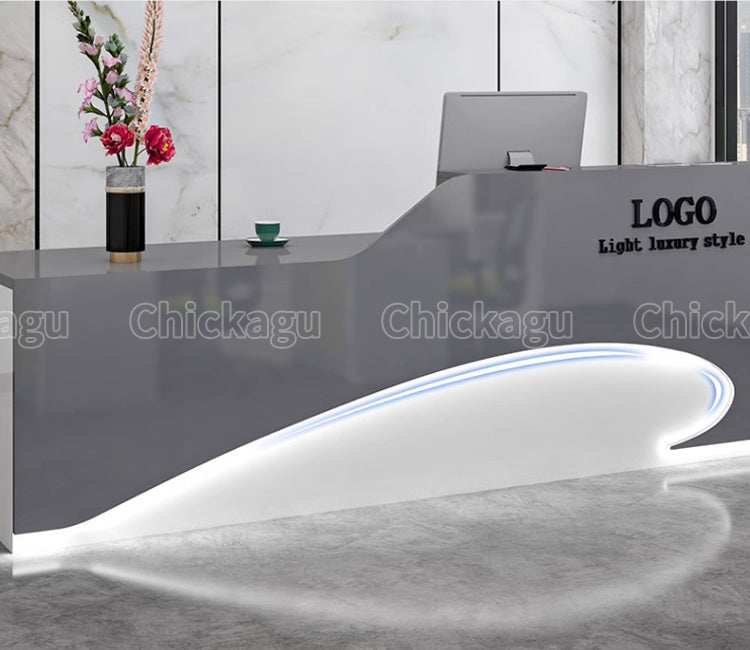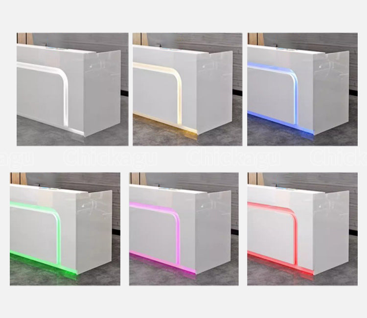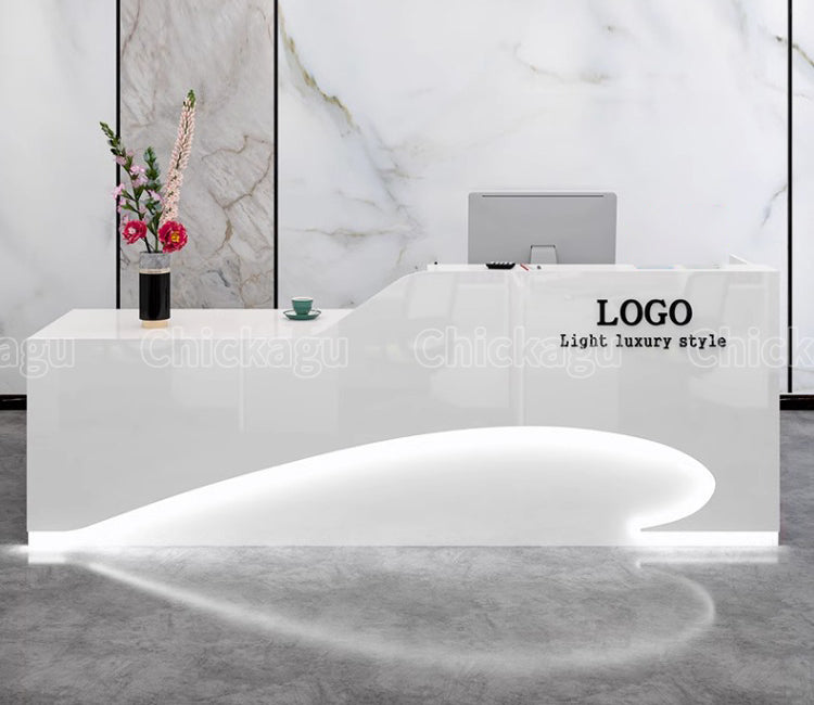 業務用 会社用 LEDライトチェーン付き 木製受付カウンター レジカウンター カウンター レセプションデスク 受付カウンター エントランス受付 シンプル ホワイト カスタマイズ可能 JDT-C007