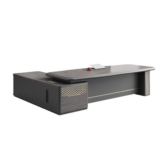 デスク エグゼクティブ 役員デスク 作業用 役員室 エコ板材 分厚い 二重天板 角丸加工 通気孔 幕板 埋め込み型コンセント サイドキャビネット 機能的 落ち着き カスタマイズ可能 LBZ-C165