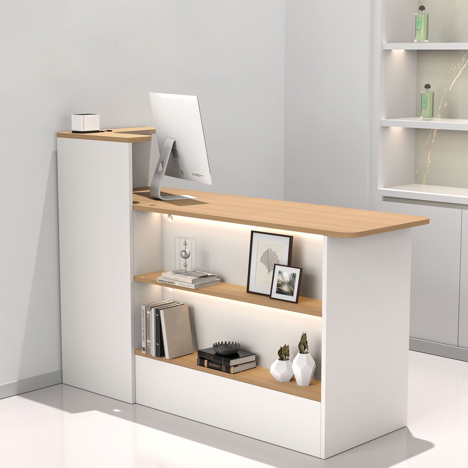 カウンター 受付カウンター オープン収納 大容量 分類収納 おしゃれ 機能的 ホワイト ナチュラル JDT-2210