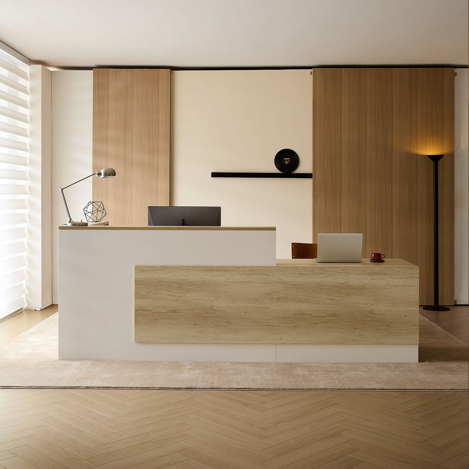 シック 落ち着き 木目調 シンプル 錠付き引き出し 扉付き収納 収納ラック L字 受付カウンター 受付台 メラミン化粧板 JDT-2215