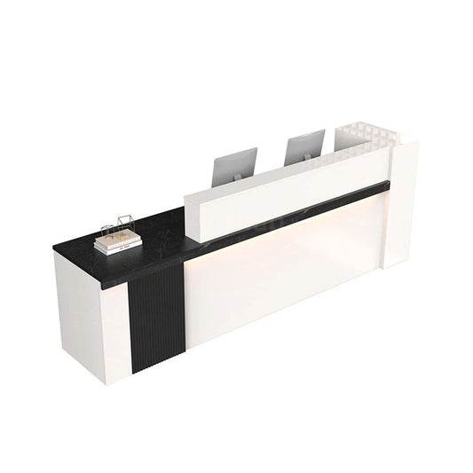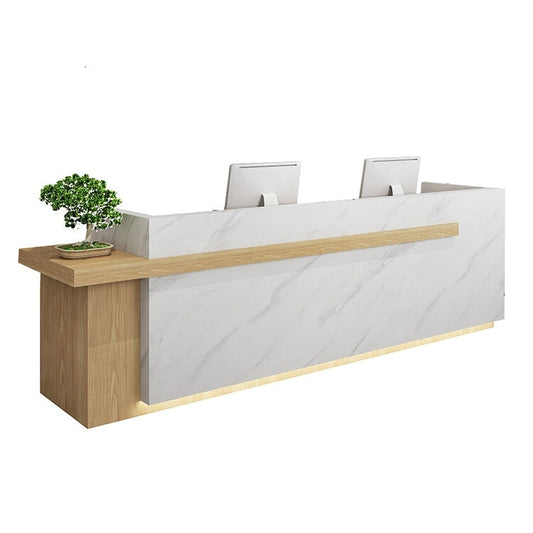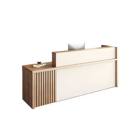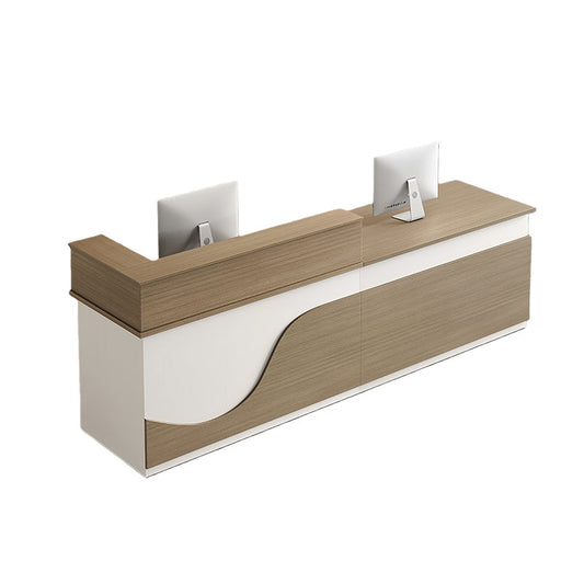 受付カウンター フロントカウンター 受付台 多機能 ロック付き 収納スペース 引き出しトレイ 便利 ホワイト ライトウォールナット JDT-2192