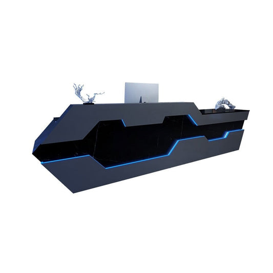 ワニス塗装 ステンレス鋼張り LEDライト 収納スペース 引き出し キーボードトレイ 受付カウンター カウンター レジ台 おしゃれ モダン 清潔感 カスタマイズ可能 JDT-C077
