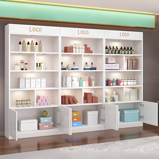 セールライト付き 大容量 多段式 厚い棚板 仕切り 取っ手 蝶番 キャビネット 収納キャビネット 収納棚 実用的 シンプル ホワイト カスタマイズ可能 SNG-C030